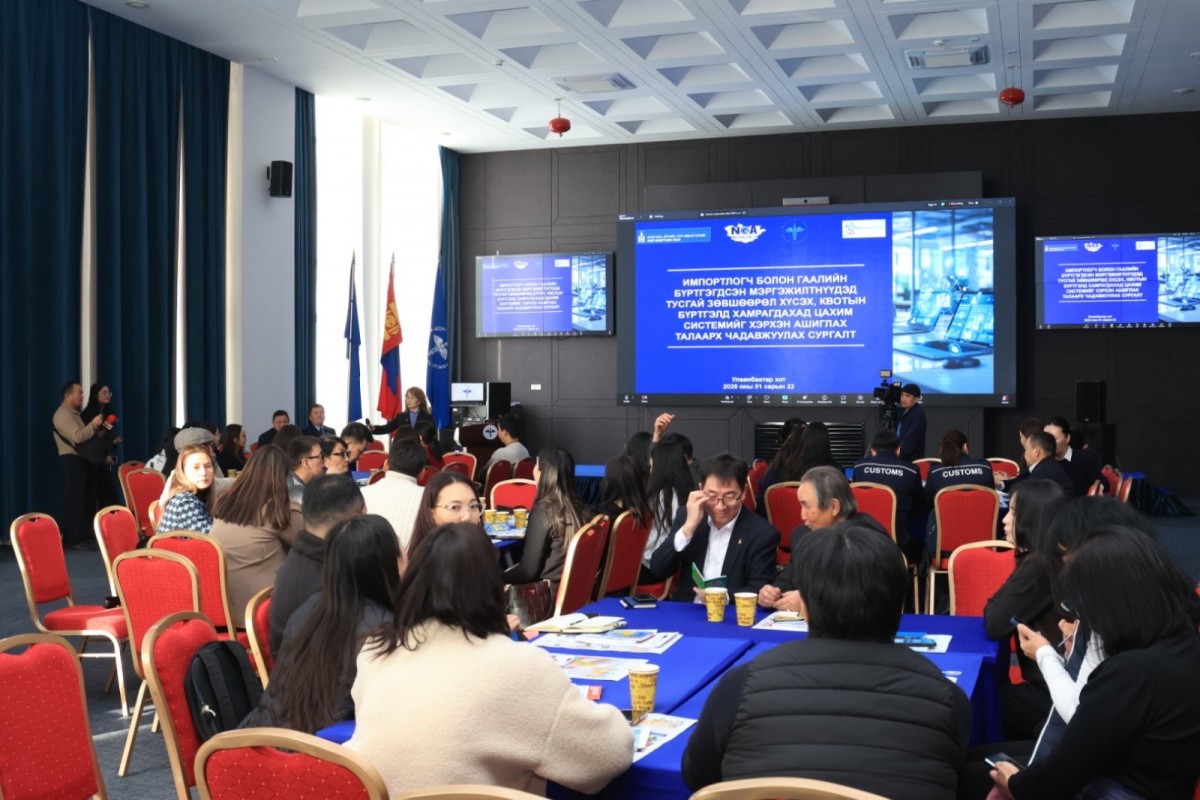 БОУАӨЯ-ны Озоны үндэсний алба 2026 оны 1 дүгээр сарын 22-ны өдөр Гаалийн ерөнхий газартай хамтран озон задалдаг бодис (ОЗБ), ДДНЧ өндөртэй бусад орлуулах бодис болон тэдгээрийг агуулсан тоног төхөөрөмж импортлогч, гаалийн бүртгэгдсэн мэргэжилтнүүдэд зориулсан “Тусгай зөвшөөрөл хүсэх, квотын бүртгэлд хамрагдахад цахим системийг ашиглах талаарх чадавхжуулах сургалт”-ыг танхим болон цахим хэлбэрийг хослуулан амжилттай зохион байгууллаа.