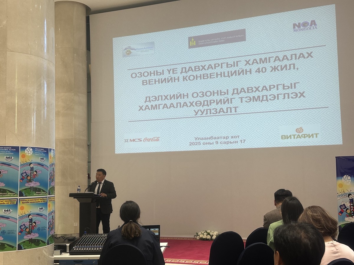 2025 оны 9 дүгээр сарын 16-ны 11:00 цагт хэвлэлийн бага хурал зохион байгуулж, Монгол Улсын озоны давхаргыг хамгаалах чиглэлээр хэрэгжүүлж буй бодлого, ололт амжилт болон цаашдын зорилго, үйл ажиллагааны талаар мэдээлэл өглөө. Хэвлэлийн бага хуралд Озоны Үндэсний албаны захирал Доктор, профессор Ц.Адъяасүрэн, ахлах мэргэжилтэн Д.Дуламсүрэн, Байгаль орчин, уур амьсгалын өөрчлөлтийн сайд Б.Батбаатарыг төлөөлж Ус цаг уур, орчны судалгаа, мэдээллийн хүрээлэнгийн захирал, доктор Г.Сарантуяа, Хөргөлтийн шинэ эрин сургалт, судалгааны төвийн захирал, доктор, профессор Ш.Энх-Амгалан, Монголын хөргөлт, халаалт, агааржуулалтын холбоо ГҮТББ-ын ТУЗ-ын дарга Х.Оргил нар оролцлоо.